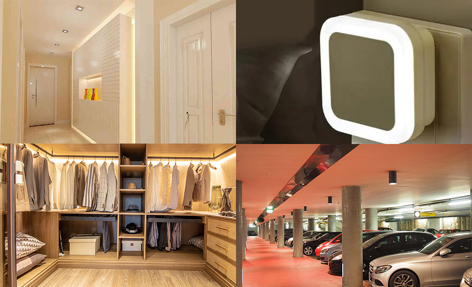 Microwave radar induction switch module Doppler radar networked garage intelligent light application, designed for underground parking lot, using intelligent two-stage brightness control, Doppler radar induction trigger, intelligent independent network communication interconnection technology