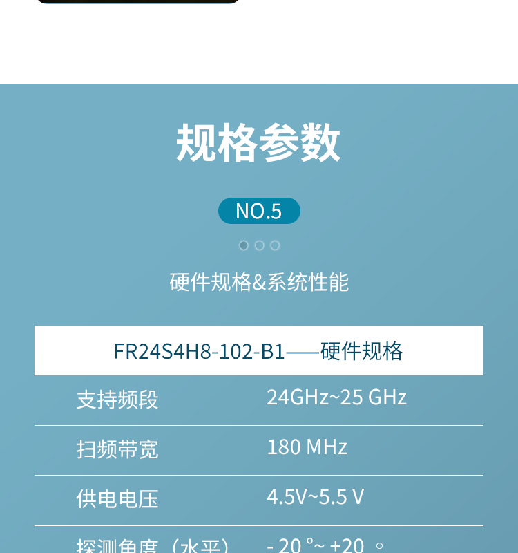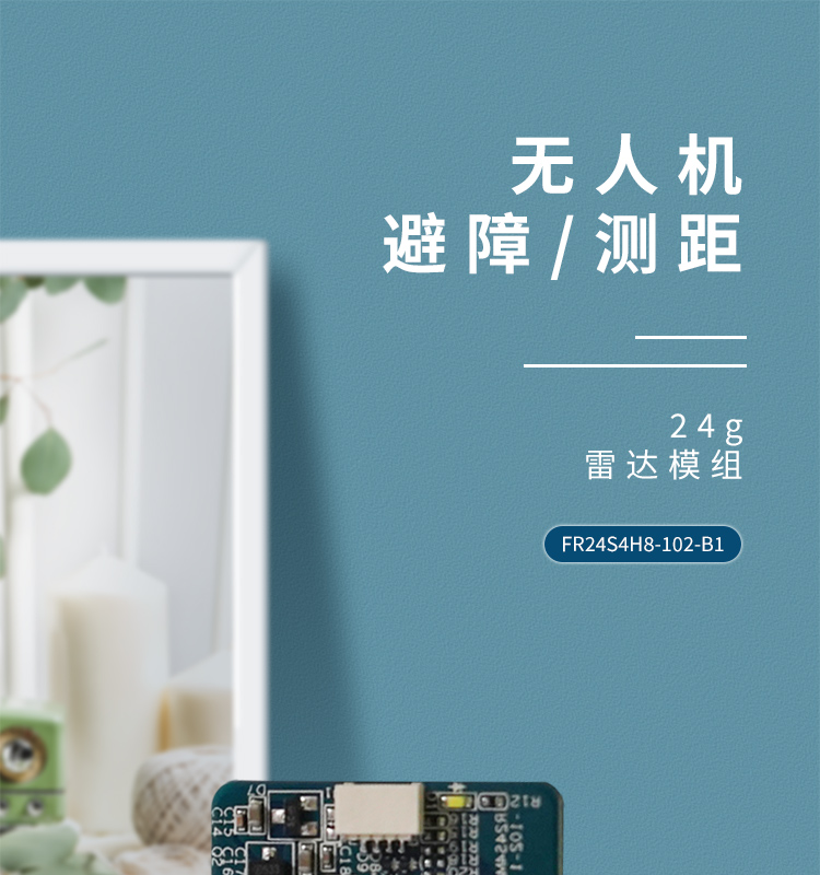 FR24S4H8-102-B1 簡(jiǎn)稱 102 是飛睿智能設(shè)計(jì)的無(wú)人機(jī)避障傳感器,包含 24G 雷達(dá)傳感器硬件和智能算法固件。FR24S4H8-102-B1 硬件搭載高性能 24GHz 一發(fā)一收天線和外圍電路;采用毫米波雷達(dá)距離測(cè)量技術(shù)和高性能芯片先進(jìn)的專有信號(hào)處理技術(shù)。